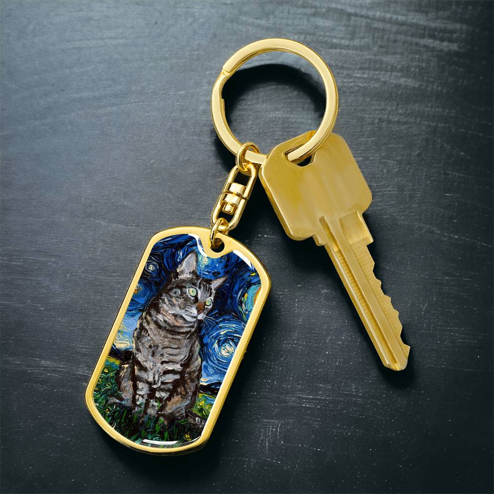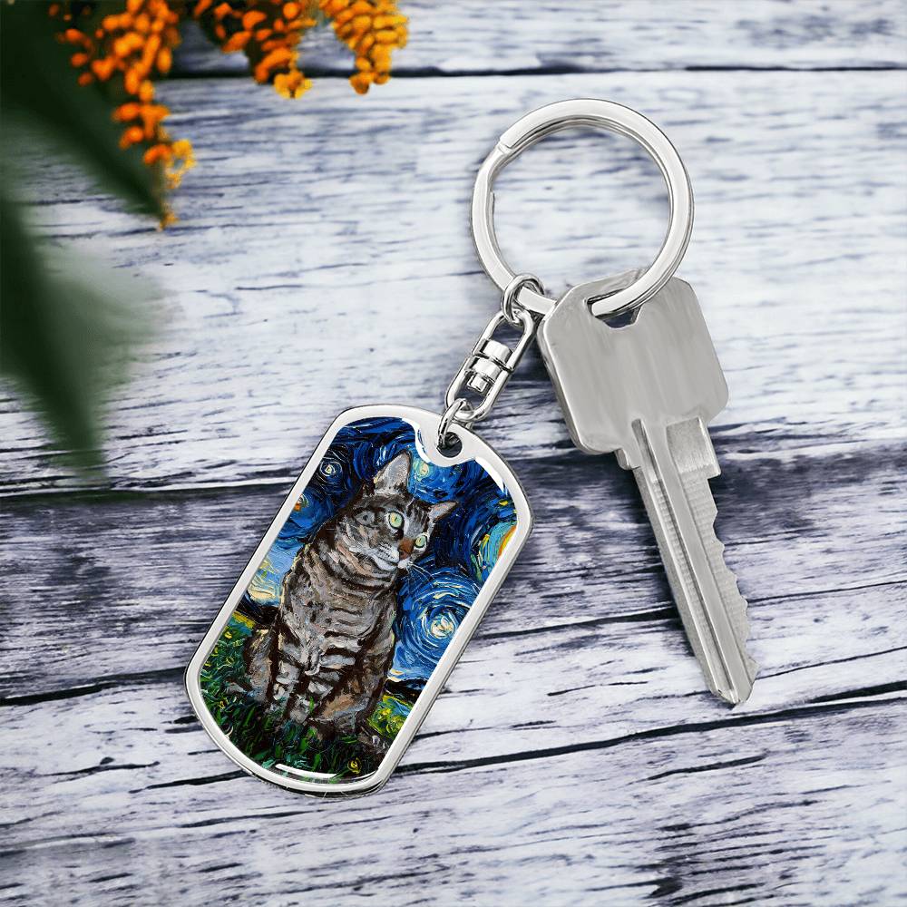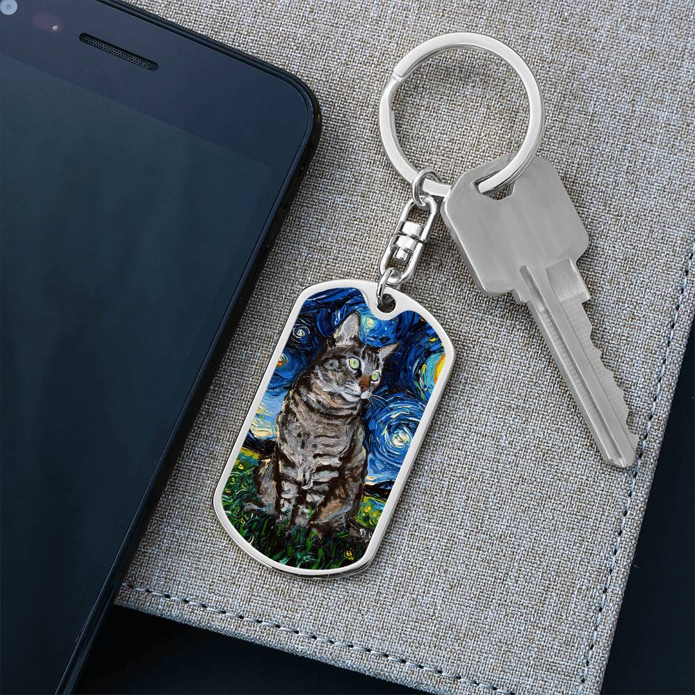 Tabby Cat Starry Night Dog Tag Keychain