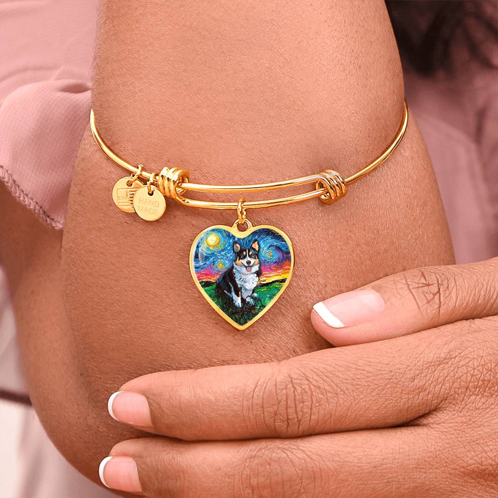 Tri Color Corgi Starry Night Heart Bangle Bracelet