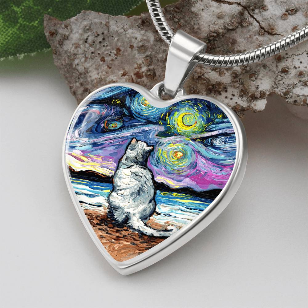 Gorgeous necklace with my artwork printed on the pendant in a glossy finish! Pendant and its chain are made with surgical steel - you can choose to have the steel look or upgrade to 18k gold plated necklace!