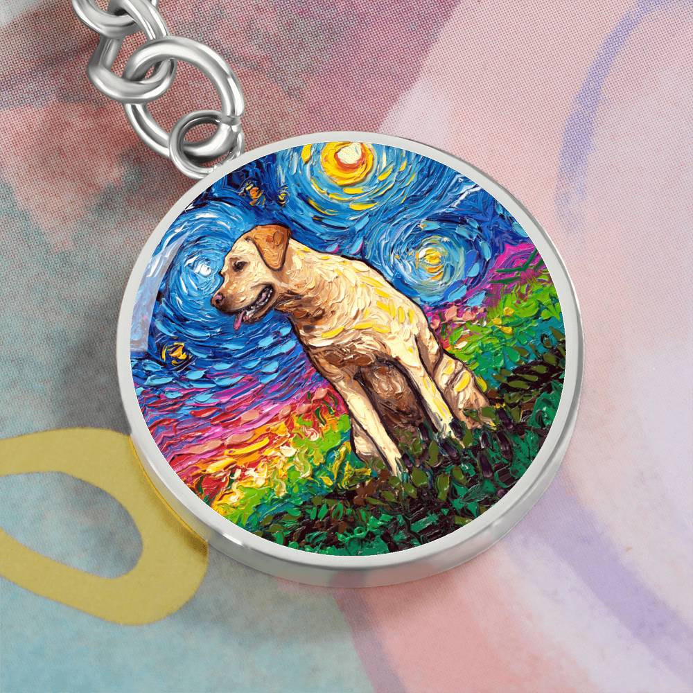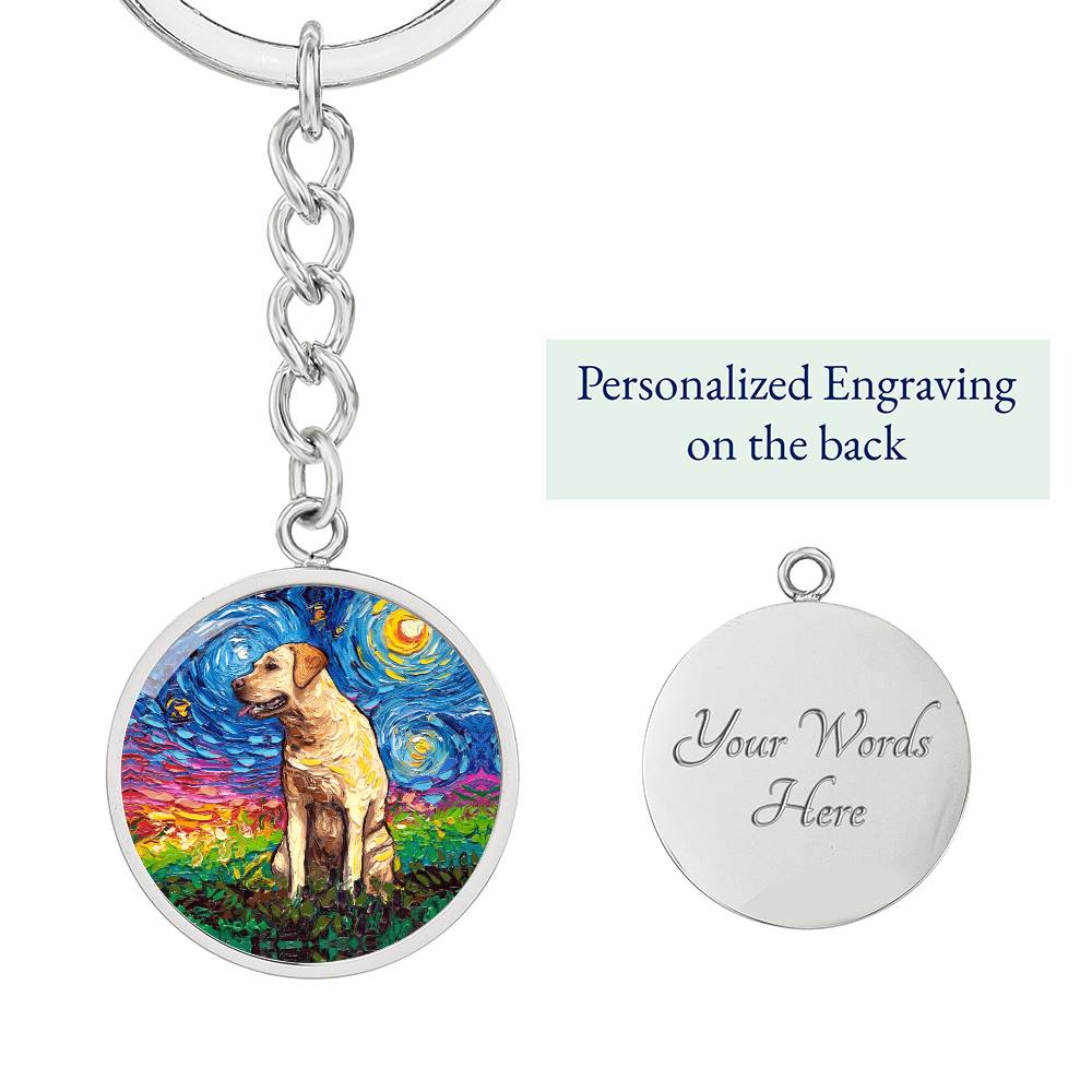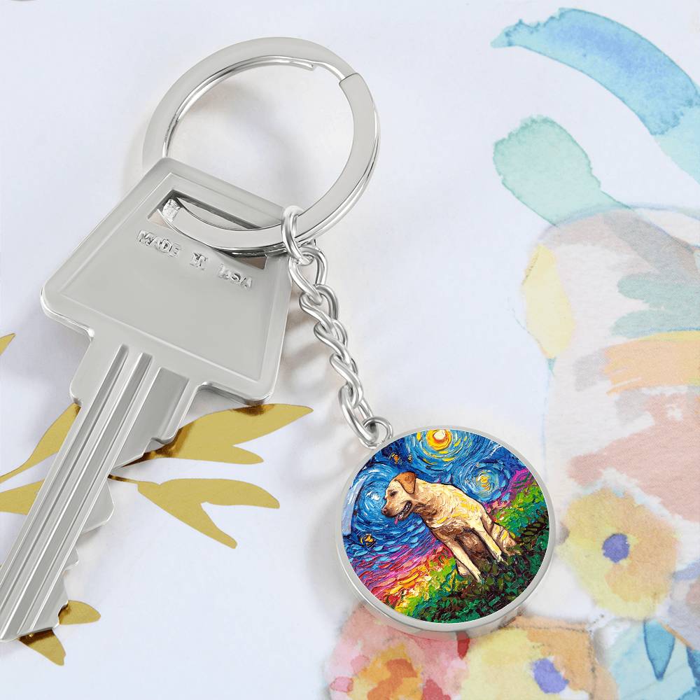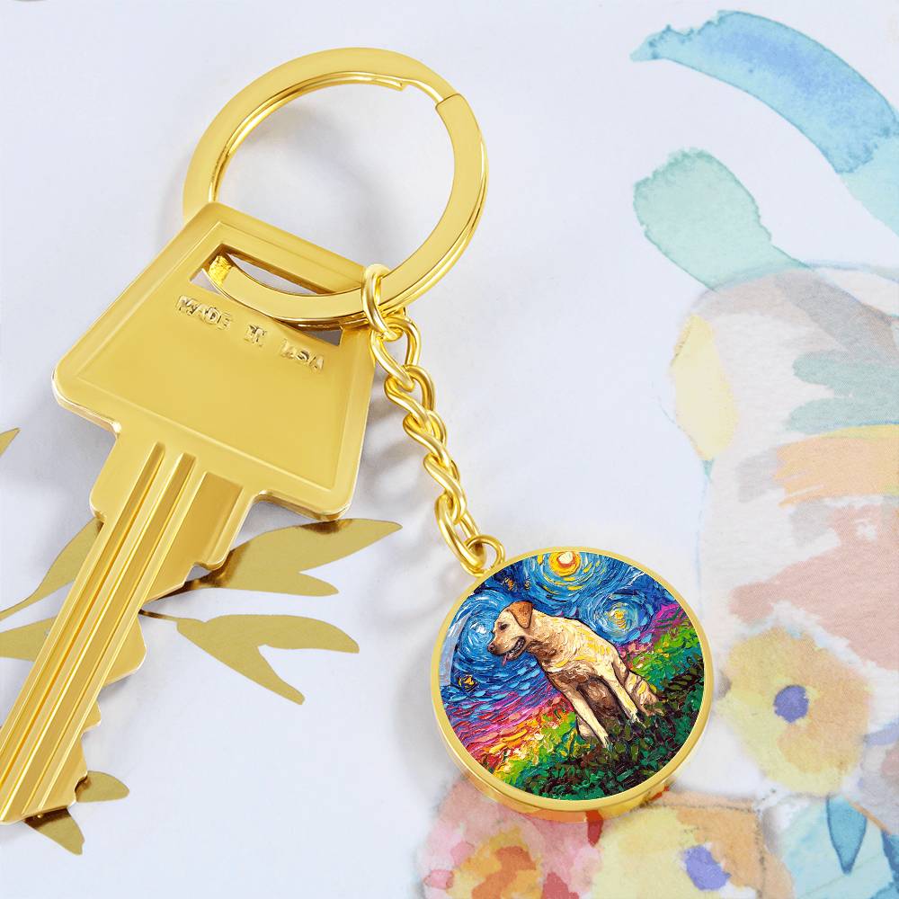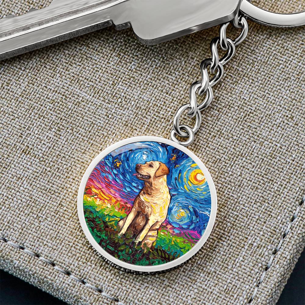 Yellow Labrador Starry Night Round Keychain